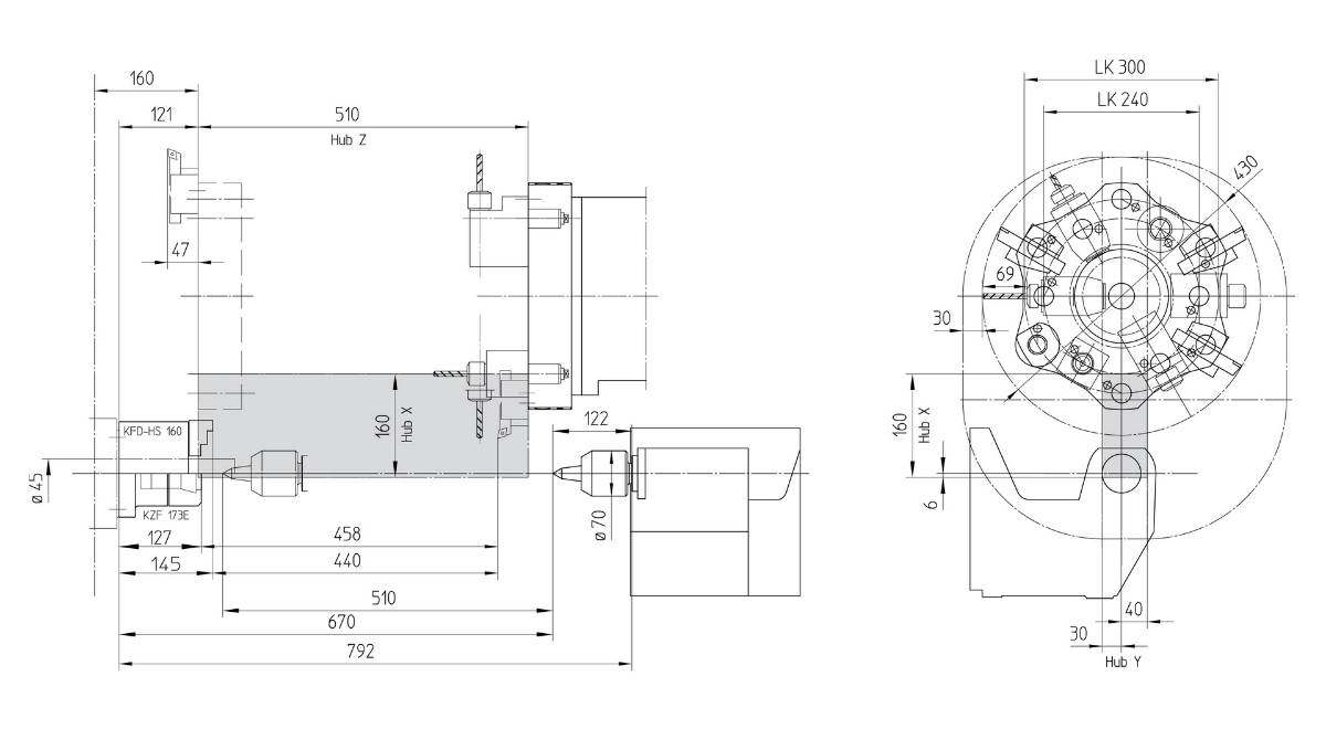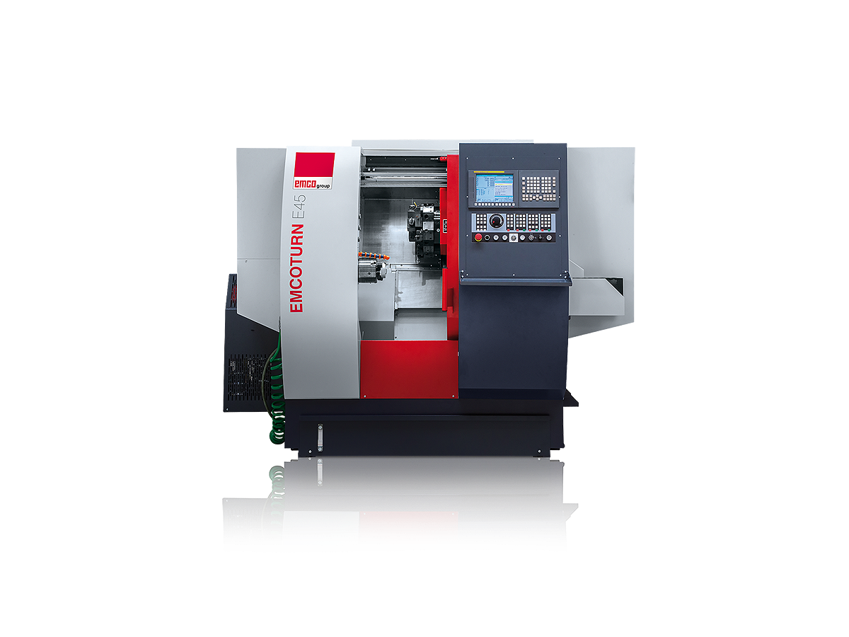 Главный шпиндель и контршпиндель (опция)Револьверная голова с приводными позициямиОсь YСистема ЧПУ Siemens или FanucУстройство подачи прутка (опция)ТЕХНИЧЕСКИЕ ХАРАКТЕРИСТИКИКЛЮЧЕВЫЕ ОСОБЕННОСТИРабочая зонаПеремещение по осям X/Y/Z: 160 / [+40 / - 30] / 510 ммДиаметр обрабатываемого прутка: 45 (51) ммМакс. диаметр точения: 220 ммМакс. диаметр проворота над станиной: 430 ммБыстрый ход по осям X/Y/Z: 24/ 10 /30 м/минЧрезвычайно жёсткая и компактная конструкцияОсь C на главном шпинделе и контршпинделеУдобный доступ к рабочей зонеТермосимметричная конструкцияГлавный шпиндельМакс. скорость вращения 6300 об/минМакс. мощность 13 кВтМакс. крутящий момент 78 НмКонтршпиндельМакс. скорость вращения 6300 об/минМакс. мощность 10 кВтМакс. крутящий момент 42 НмРевольверная голова осеваяКоличество инструментов/из них приводных: 12 / 6Размер VDI: 30Макс. скорость: 5000 об/минМакс. мощность: 4 кВтМакс. крутящий момент: 16 НмБРОШЮРА EMCOTURN E45Револьверная голова радиальная (версия с контршпинделем)Количество инструментов/из них приводных: 12 / 12Размер VDI: 25Макс. скорость: 6000 об/минМакс. мощность: 4 кВтМакс. крутящий момент: 16 НмГабариты и весГабаритные размеры (ДхШхВ): 2575х1760х1960 ммВес станка: 3300 / 4000 кгЧЕРТЁЖ РАБОЧЕЙ ЗОНЫEmcoturn E45 с задней бабкойEmcoturn E45 с контршпинделем