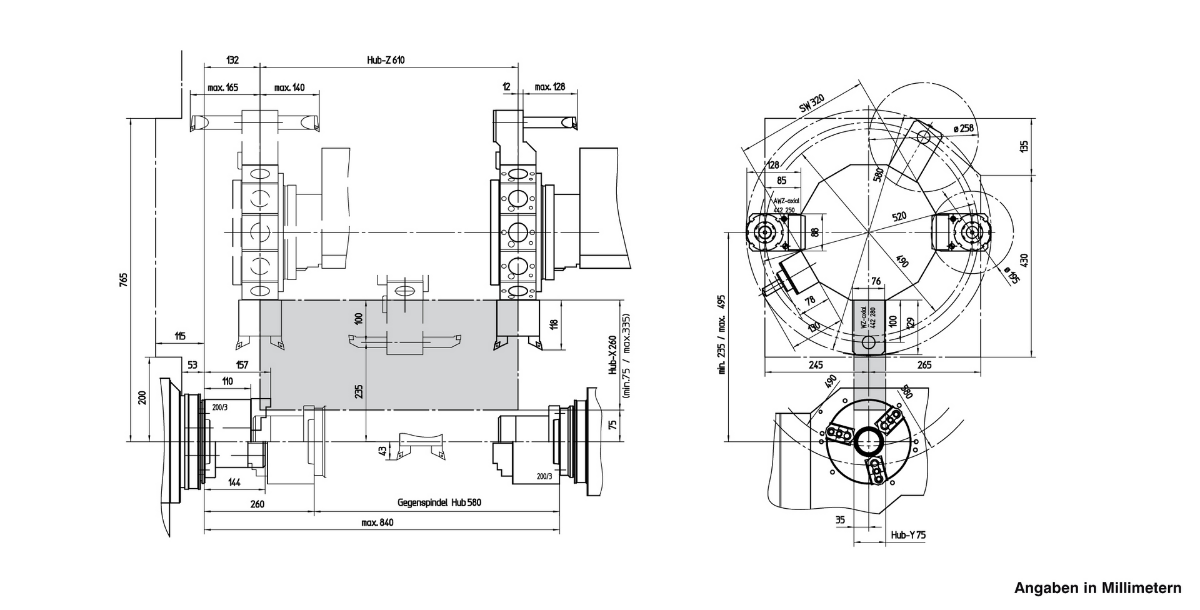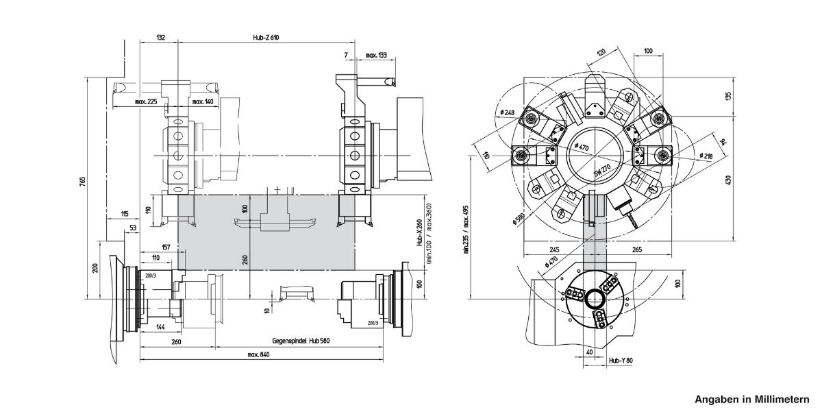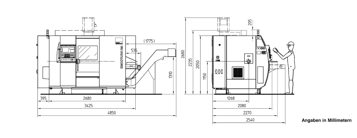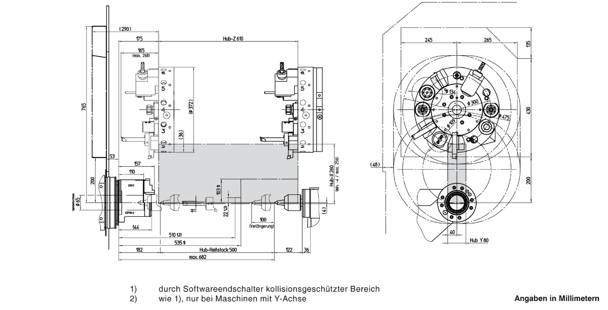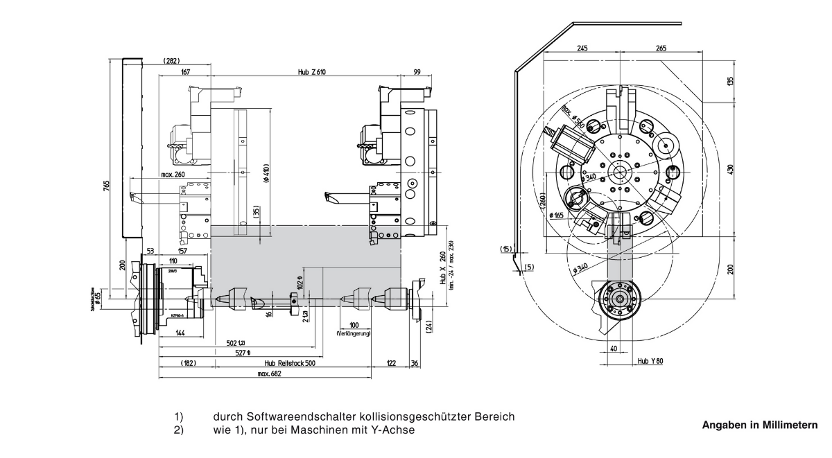 Главный шпиндель и контршпиндель (опция)Револьверная голова VDI30 с приводными позициямиОсь YСовременная система ЧПУ Siemens или FanucУстройство подачи прутка (опция)ТЕХНИЧЕСКИЕ ХАРАКТЕРИСТИКИКЛЮЧЕВЫЕ ОСОБЕННОСТИРабочая зонаПеремещение по осям X/Y/Z: 210 / [+ / - 40] / 610 ммДиаметр обрабатываемого прутка: 65 ммМакс. диаметр точения: 500 ммМакс. диаметр проворота над станиной: 610 ммБыстрый ход по осям X/Y/Z: 30/ 15 /30 м/минОчень жёсткая конструкцияОптимальный отвод стружки из рабочей зоныШирокая база между направляющими оси YБольшая рабочая зона с удобным доступомГлавный шпиндельМакс. скорость вращения 5000 об/минМакс. мощность 22 кВтМакс. крутящий момент 305 НмКонтршпиндельМакс. скорость вращения 6300 об/минМакс. мощность 16,5 кВтМакс. крутящий момент 125 НмБРОШЮРА EMCOTURN E65Револьверная головаКоличество инструментов/из них приводных: 12 / 12Размер VDI: 30 (40)Макс. скорость: 5000 (4500) об/минМакс. мощность: 6,7 кВтМакс. крутящий момент: 25 НмГабариты и весГабаритные размеры (ДхШхВ): 3480х2080х2060 ммВес станка: 6500 кгГАБАРИТНЫЙ ЧЕРТЁЖЧЕРТЁЖ РАБОЧЕЙ ЗОНЫEmcoturn E65 (VDI30) с задней бабкойEmcoturn E65 (VDI30) с контршпинделемEmcoturn E65 (VDI40) с задней бабкойEmcoturn E65 (VDI40) с контршпинделем