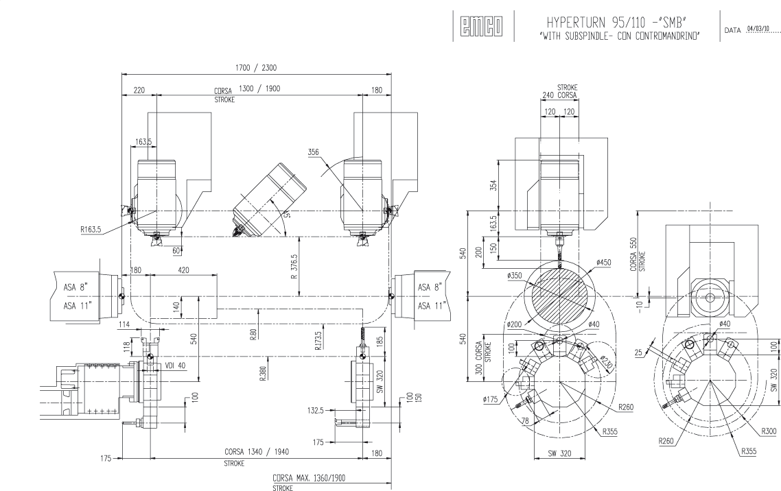 2 шпинделя с осью С2 револьверных головымощный фрезерный шпиндельприводные инструменты на обоих револьверных головахТЕХНИЧЕСКИЕ ХАРАКТЕРИСТИКИКЛЮЧЕВЫЕ ОСОБЕННОСТИРабочая зонаПеремещение по оси X1 с револьверной головой: 340 ммПеремещение по оси X1 с осью В: 550 ммПеремещение по оси X2: 300 ммПеремещение по оси Y6 +/- 120 ммПеремещение по оси Z1 с револьверной головой: 1340 / 1940 ммПеремещение по оси Z1 с осью В: 1300 / 1900 ммПеремещение по оси Z2: 1340 / 1940 ммРасстояние между торцами шпинделей: 1700 / 2300 ммМакс. диаметр точения: 710ммМакс. диаметр проворота над станиной: 720 ммБыстрый ход по осям X/Y/Z: 30/15/30 м/минДва шпинделя для комплексной обработки деталейСтабильная и точная ось С для высокоточного контурного фрезерования и фрезерно-токарных операцийБольшая рабочая зона для обработки крупногабаритных заготовокФрезерный шпиндель с осью В - диапазон поворота 210 град.Модульная конструкция станкаГлавный шпиндель/контршпиндельМакс. скорость вращения 3500 об/минМакс. мощность 33 кВтМакс. крутящий момент 800 НмРевольверная головаКоличество инструментов/из них приводных: 2х12 / 2х12Размер VDI: 40Макс. скорость: 4000 об/минМакс. мощность: 14 кВтМакс. крутящий момент: 45 НмБРОШЮРА HYPERTURN 95Фрезерный шпиндельМакс. скорость: 7000 / 12000 об/минМощность: 21,5 кВтКрутящий момент: 128 НмДиапазон поворота: 210 град.Инструментальный магазинИнструментальный конус: HSK-63AКоличество инструментов: 40 / 80 поз.Габариты и весГабаритные размеры (ДхШхВ): 8450/9100x3050x2500 ммВес станка: 18000 - 22000 кгЧЕРТЁЖ РАБОЧЕЙ ЗОНЫ HYPERTURN 95 SMBЧЕРТЁЖ РАБОЧЕЙ ЗОНЫ HYPERTURN 95 SM2Y
