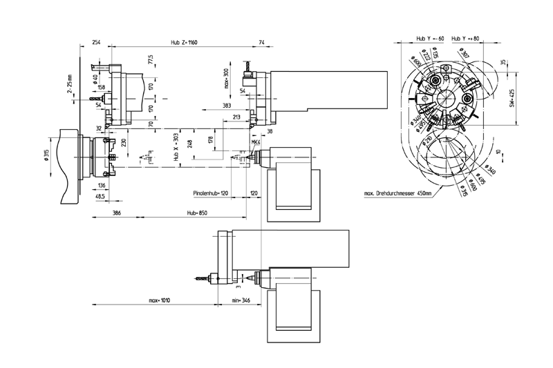 Мощный главный шпиндель с механическим тормозомРевольверная голова с приводными позициямиОсь YСистема ЧПУ SiemensЛюнет для обработки валовПрограммируемая задняя бабкаТЕХНИЧЕСКИЕ ХАРАКТЕРИСТИКИКЛЮЧЕВЫЕ ОСОБЕННОСТИРабочая зонаПеремещение по осям X/Y/Z: 303 / 140 / 1160 ммДиаметр обрабатываемого прутка: 95 ммМакс. диаметр точения: 450 ммМакс. диаметр проворота над станиной: 700 ммБыстрый ход по осям X/Y/Z: 24/12/30 м/минТермостабильная конструкцияВысокая точность обработкиСтабильная ось Y с большим ходом12 приводных инструментов VDI40Высокая скорость линейных перемещенийКомпактностьГлавный шпиндельМакс. скорость вращения 3500 об/минМакс. мощность 33 кВтМакс. крутящий момент 800 НмРевольверная головаКоличество инструментов/из них приводных: 12 / 12Размер VDI: 40Макс. скорость: 4000 об/минМакс. мощность: 8 кВтМакс. крутящий момент: 35 НмБРОШЮРА MAXXTURN 95Задняя бабкаКонус: МК4Перемещение: 850 ммГабариты и весГабаритные размеры (ДхШхВ): 4750х2050х2200 ммВес станка: 10400 кгГАБАРИТНЫЙ ЧЕРТЁЖЧЕРТЁЖ РАБОЧЕЙ ЗОНЫ